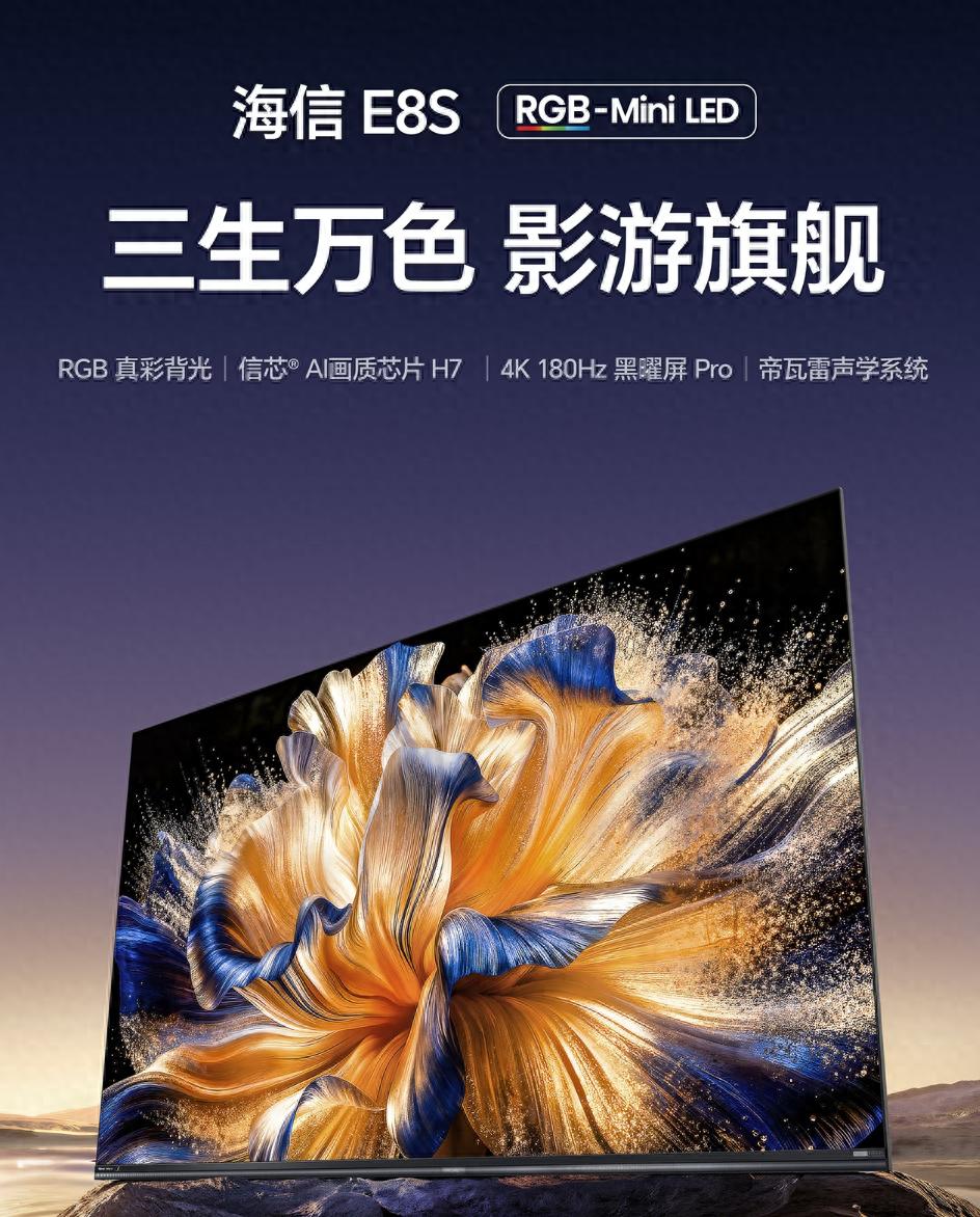 海信E8S在业内打出了一张王炸——RGB-Mini LED显示技术。它并不满足于传统的白光Mini LED,而是激进地采用了红、绿、蓝三色独立发光芯片。用通俗的话说,这就像是从普通油画颜料升级到了数码级精度的原色打印。
