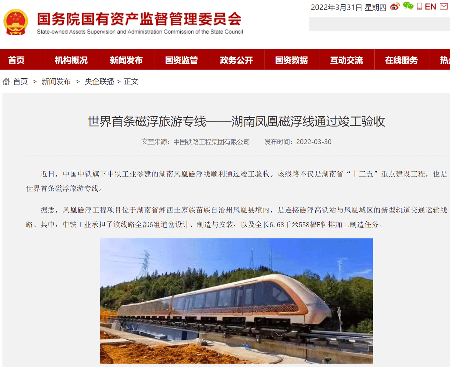 IT之家3月31日消息,据国资委网站,湖南凤凰磁浮线近日顺利通过竣工验收。该线路不仅是湖南省“十三五”重点建设工程,也是世界首条磁浮旅游专线。