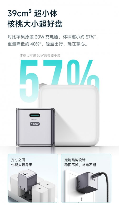 米物科技产品负责人表示,小魔方45W氮化镓充电器的推出,旨在打破“高功率必笨重”的行业固有认知,以用户实际需求为核心,打造全场景适配的快充产品。