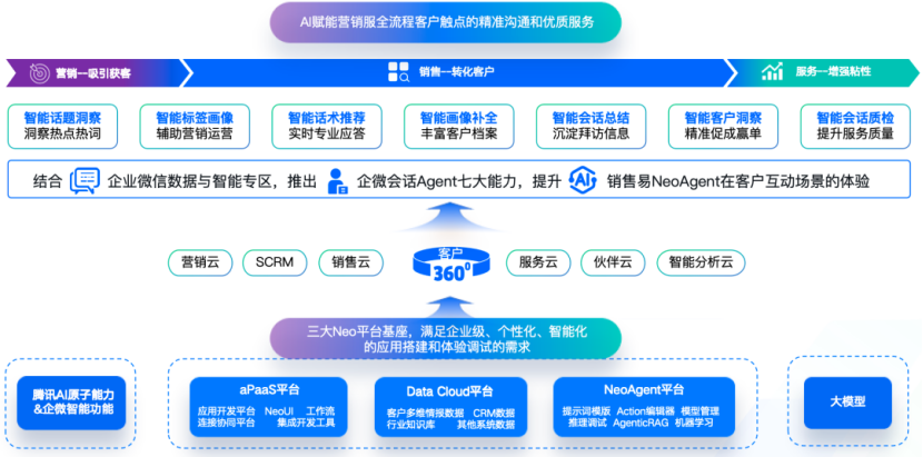 销售易深度融合企业微信,挖掘企微会话价值,推出全新企微会话Agent,以7大智能化能力贯穿客户经营全流程,助力营销服业务人员在客户经营过程中实现精准营销、高效跟进、提升服务质量。