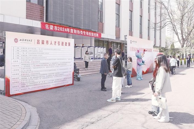 为进一步做好财政金融系统安全风险防范工作,聚焦财经类人才紧缺短板,市委组织部、市人社局于4月10日——13日组织相关单位走进山西财经大学,开展为期4天的吕梁市2024年度财经类专项校园招聘活动。