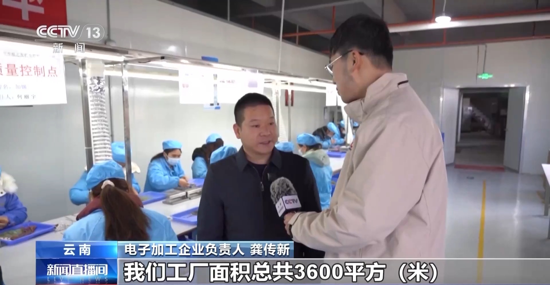 电子加工企业负责人 龚传新:我们工厂面积总共3600平方米,在职工人510人,大概每100平方米可以吸纳20个人就业。今年订单还是比较充足,比去年增长百分之六七个点。目前生产线全部是满载在生产。