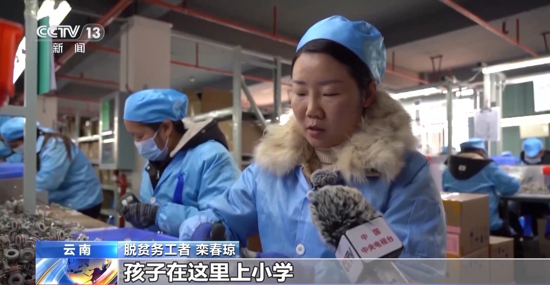 脱贫务工者 栾春琼:在这里上班,像我们带孩子的,小孩在这里上小学,方便照管小孩,家里也能照顾到老人。要是选择去外省,外省工资虽然高,但开销也大,孩子也照顾不了。