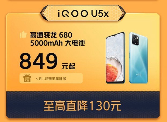 最后推荐的iQOO U5x被誉为“性能小金刚”,搭载高通骁龙680处理器,内置5000mAh超大容量电池和128GB大内存,非常适合学生党或者老年人群体。活动期间,iQOO U5x至高直降130,最低入手价849起,PLUS会员还赠送半年延保。