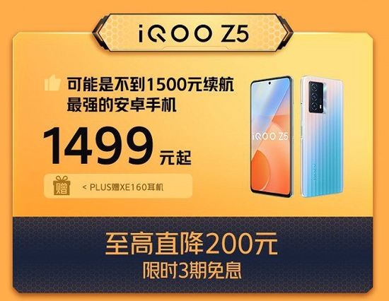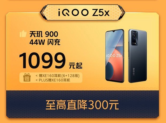 活动期间,iQOO Z5至高减200,限时3期免息,最低1499起;iQOO Z5x至高减300,最低1099起,两款机型均享受预售PLUS加赠黄金包服务--5成保值换新、赠送半年延保以及XE160耳机(3.5mm)。