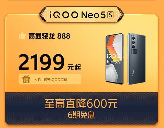 活动期间,iQOO Neo5S至高减600,到手仅需2199起,而且还享受6期免息,预售PLUS会员加赠黄金服务包--5成保值换新、赠送半年延保以及iQOO入耳式耳机(Type-C)。