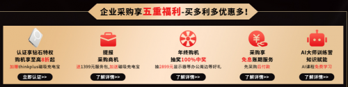 企业会员在活动期间购买[企业购]自营ThinkPad、ThinkBook、扬天系列产品,每个账户均可参与抽奖一次,百分百中奖!