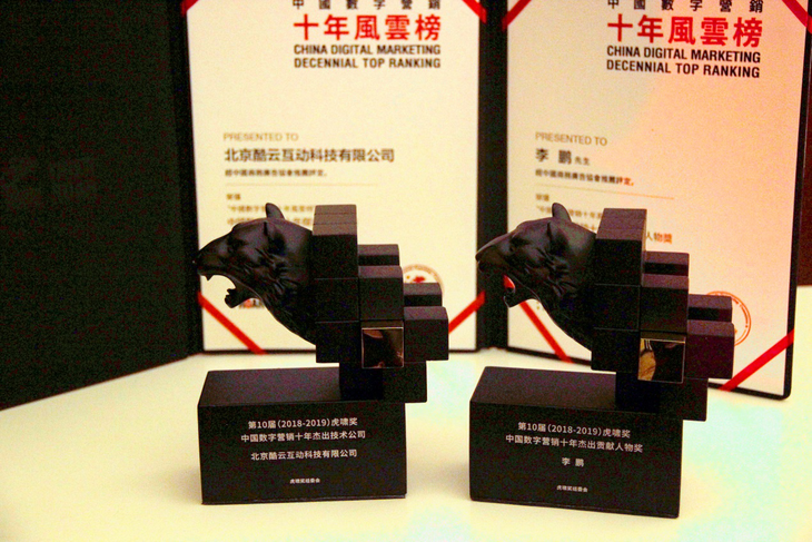 此外,在晚上举办的“中国数字营销十年风云榜颁奖晚宴”上,北京酷云互动科技有限公司及董事长&CEO李鹏、首席技术官陆承恩分别获得了“中国数字营销十年杰出技术公司”、“中国数字营销十年杰出贡献人物奖”、“中国数字营销十年杰出数字技术人物奖”三项大奖。